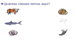 1) O documento discute classes, atributos, métodos e instâncias em Java, apresentando exemplos de como modelar classes de livros, funcionários e outros.