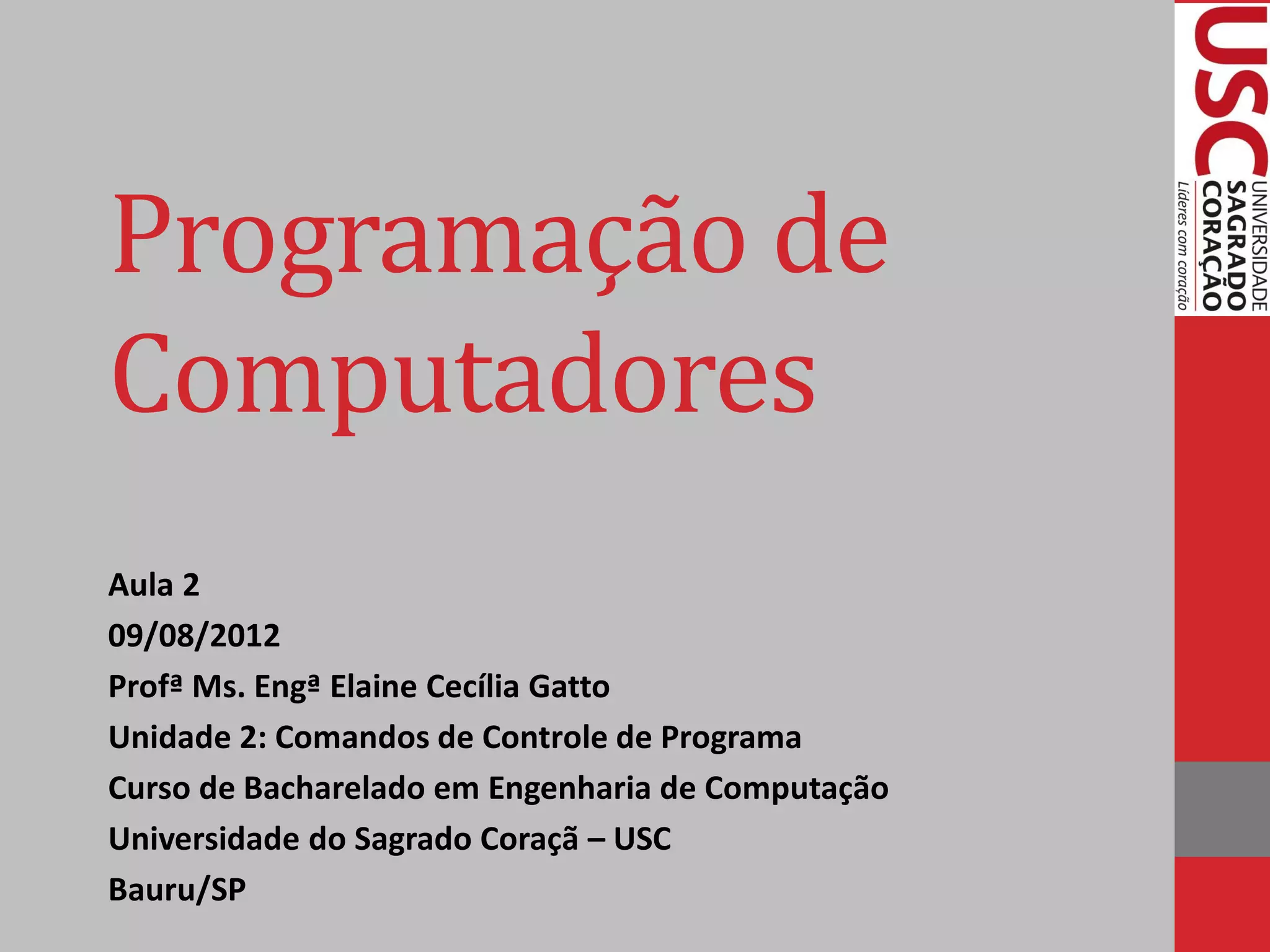 Este documento resume os principais comandos de controle de programa em C, incluindo estruturas condicionais como if/else e switch, e estruturas de repetição como for e while. Os exemplos mostram como implementar cada estrutura e suas funcionalidades.