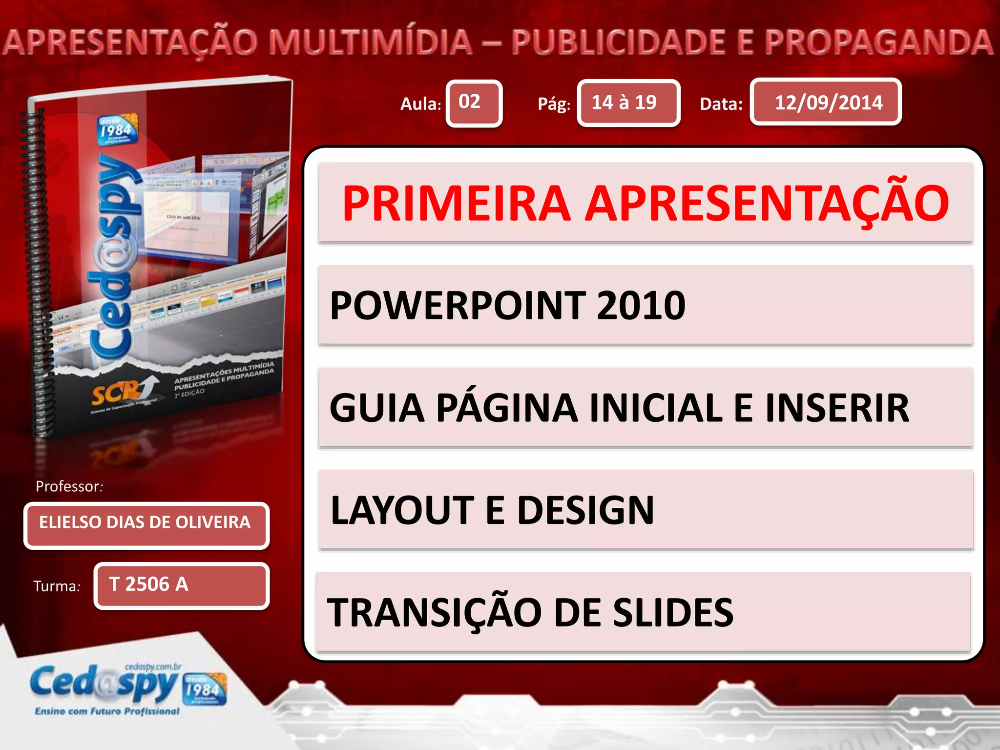 Turma: T 2506 A Aula: 02 Pág: 14 à 19 Data: 12/09/2014