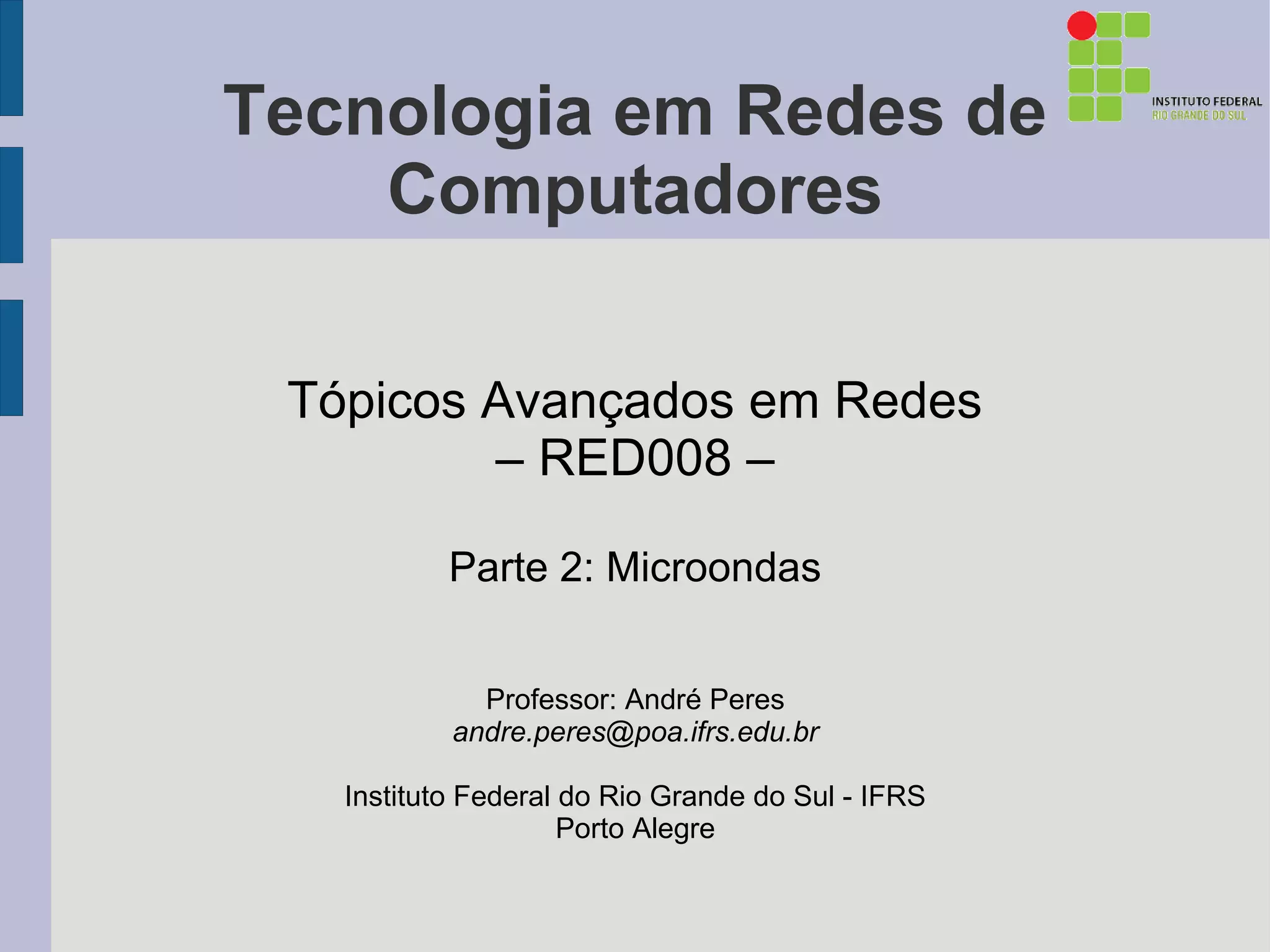 O documento discute conceitos fundamentais sobre microondas e sua aplicação em redes sem fio, incluindo: (1) como antenas convertem sinais elétricos em ondas eletromagnéticas e vice-versa; (2) como a potência desses sinais é medida em dBm e dBi; e (3) como calcular a potência efetiva irradiada (ERP) a partir da potência da placa, atenuação dos cabos e ganho da antena.