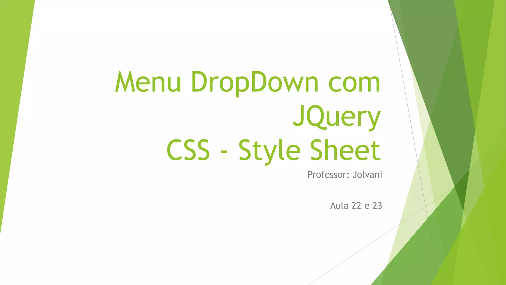 Este documento apresenta instruções para criar um menu dropdown com HTML, CSS e jQuery. Inicialmente, é construído um menu básico com tags <ul> e estilizado com CSS embutido. Em seguida, é adicionado um segundo nível de submenu e efeito dropdown ao passar o mouse com jQuery. Por fim, o menu é posicionado horizontalmente com a propriedade float do CSS.