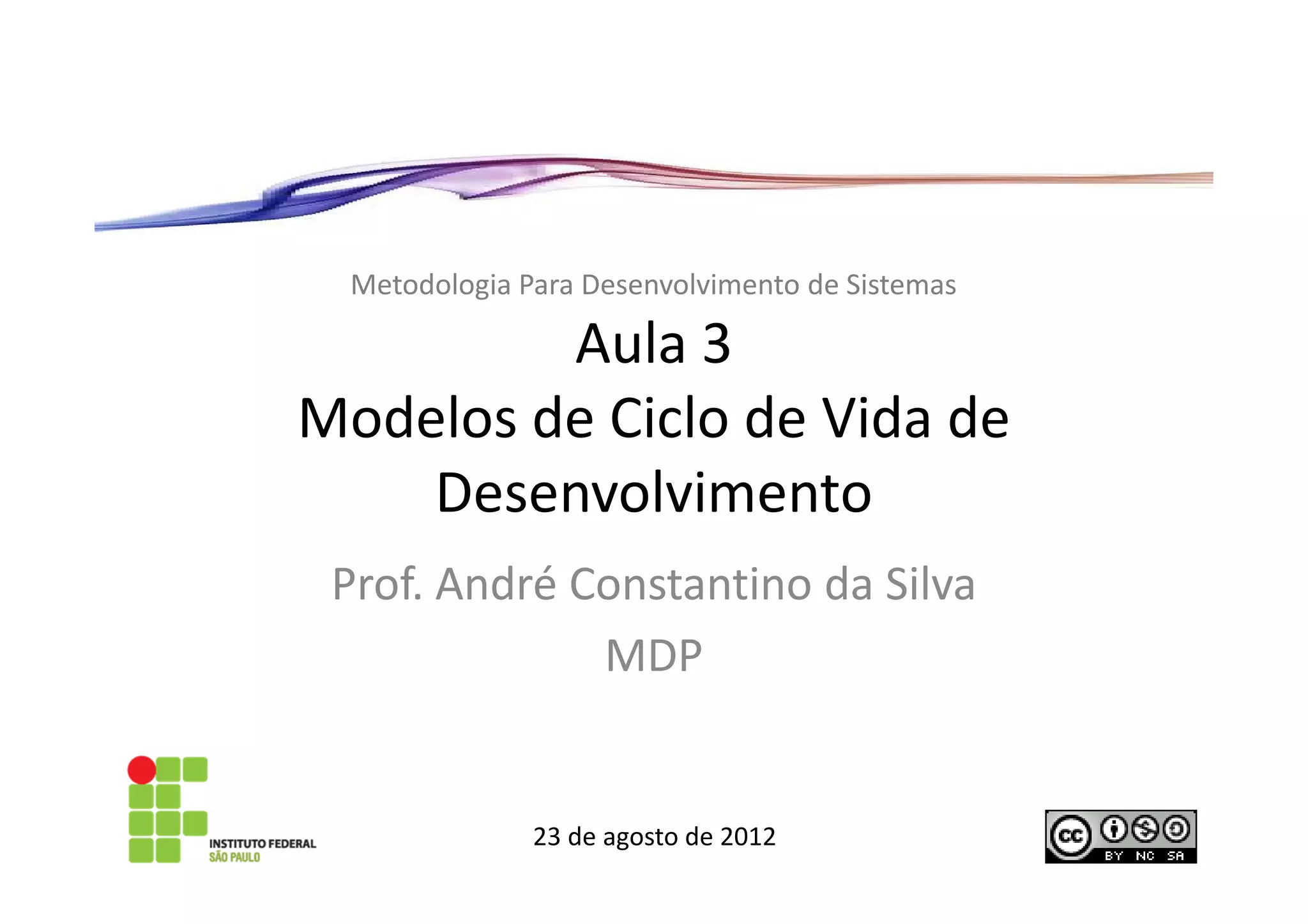 O documento descreve diferentes modelos de ciclo de vida para desenvolvimento de sistemas, incluindo: (1) o modelo cascata, (2) prototipação, (3) espiral, (4) incremental, (5) RAD e (6) métodos ágeis como XP. Cada modelo possui vantagens e desvantagens dependendo do tipo e complexidade do projeto. O documento fornece detalhes sobre cada modelo para auxiliar na escolha da metodologia mais adequada.
