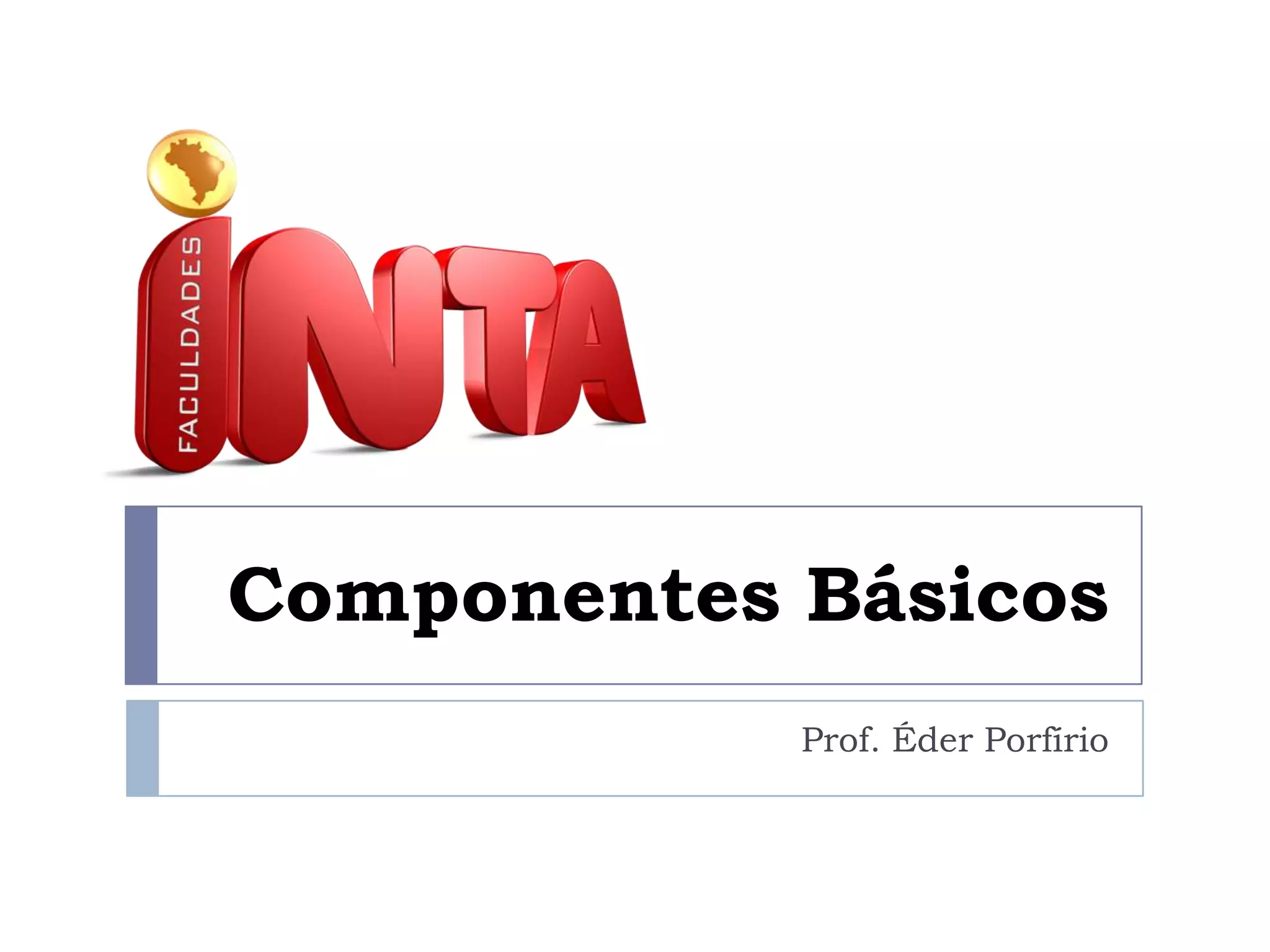 O documento discute os componentes básicos de um computador, incluindo hardware (componente físico), software (componente lógico) e componente humano. Ele descreve os componentes internos de um computador, como placa-mãe, processador, memória e disco rígido. Também aborda periféricos de entrada, saída e híbridos e sistemas operacionais versus softwares aplicativos.