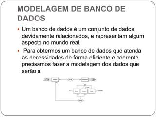 O documento discute a modelagem de bancos de dados, abrangendo suas fases principais: modelagem conceitual, modelagem lógica e implementação do modelo lógico. Destaca a importância de entender as necessidades do usuário e as relações entre os dados para desenvolver uma boa modelagem e menciona diferentes tipos de modelos de dados, incluindo modelos hierárquicos, de rede e relacionais. Também aborda as diferenças entre modelos orientados a registros e objetos, com foco em suas aplicações e limitações.