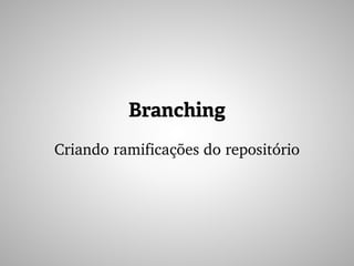 O documento discute ramificações (branching) no Git, incluindo como criar novas ramificações e alternar entre elas, como mesclar (merge) ramificações, e como reorganizar commits com rebase. Exemplos práticos são fornecidos para demonstrar esses conceitos-chave do controle de versão distribuído.