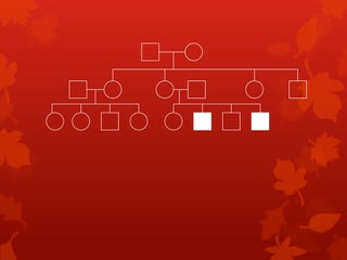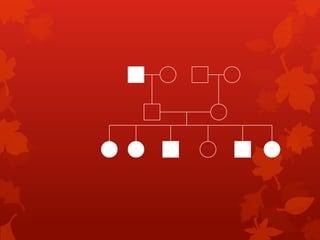 O documento explica o que é um heredograma, como representa as relações de parentesco e o padrão de herança em uma família, usando símbolos para representar sexo e traços genéticos. Também mostra como construir heredogramas para diferentes cenários familiares e explica os tipos de herança autossômica e ligada ao sexo.
