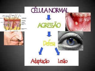 O documento discute os mecanismos da patogenicidade bacteriana, incluindo como bactérias invadem o corpo humano, colonizam tecidos e causam doenças. Detalha fatores como adesão, toxinas, biofilmes e resistência aos antibióticos que permitem a sobrevivência e disseminação de bactérias patogênicas.
