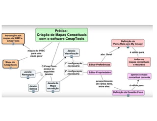O documento discute os conceitos de mapas conceituais e aprendizagem significativa de acordo com Ausubel e Novak. Explica que mapas conceituais organizam conceitos de forma hierárquica para facilitar a compreensão, e que a aprendizagem significativa ocorre quando novas ideias são relacionadas a conceitos já existentes na estrutura cognitiva do aluno.
