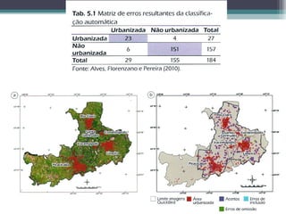 O documento discute as etapas do processamento de imagens de sensoriamento remoto, incluindo pré-processamento, realce, segmentação, classificação e pós-processamento. Detalha técnicas como georreferenciamento, correção atmosférica, realce de contraste, composições coloridas e classificação supervisionada e não supervisionada para mapear cobertura da terra.