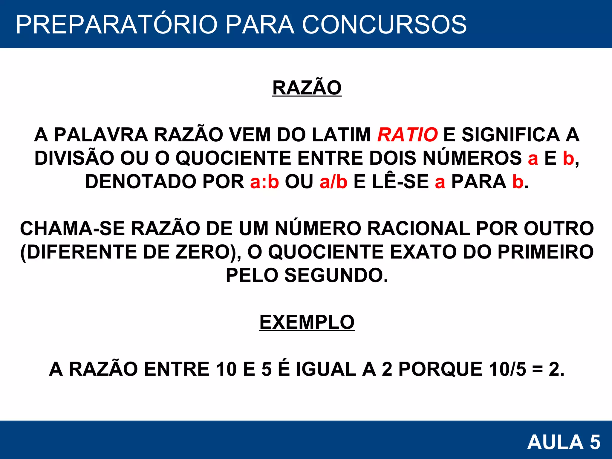 O documento discute o conceito de razão e proporção matemática. Em particular, explica que uma razão é o quociente entre dois números, denotado por a/b. Também define propriedades de proporções como a igualdade entre razões e fornecer exemplos de cálculos envolvendo razões e proporções.