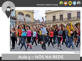 O documento discute estratégias de comunicação e divulgação de blogs educacionais para além da sala de aula, incluindo o uso de redes sociais como Facebook e Twitter. É apresentado o conceito de flash mob e discutidos tipos de blogs, como usar cada rede social para divulgação, dicas de conteúdo e frequência de postagem.