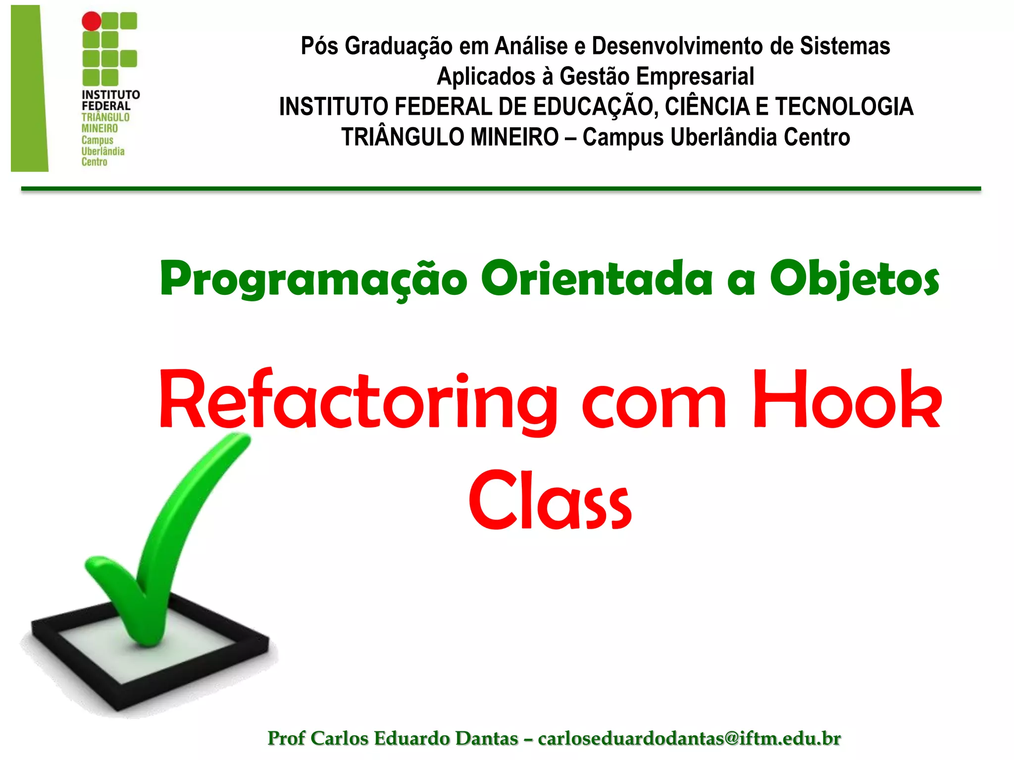 Programação Orientada a Objetos - Pós Graduação - Aula 5 - refactoring com hook class
