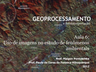 O documento discute o uso de imagens de satélite no estudo de fenômenos ambientais como previsão do tempo, detecção de focos de incêndio, desmatamento, erosão, escorregamento de encostas e inundação. As imagens permitem monitorar e mapear essas ocorrências dinamicamente para subsidiar o planejamento do uso da terra e minimizar danos.