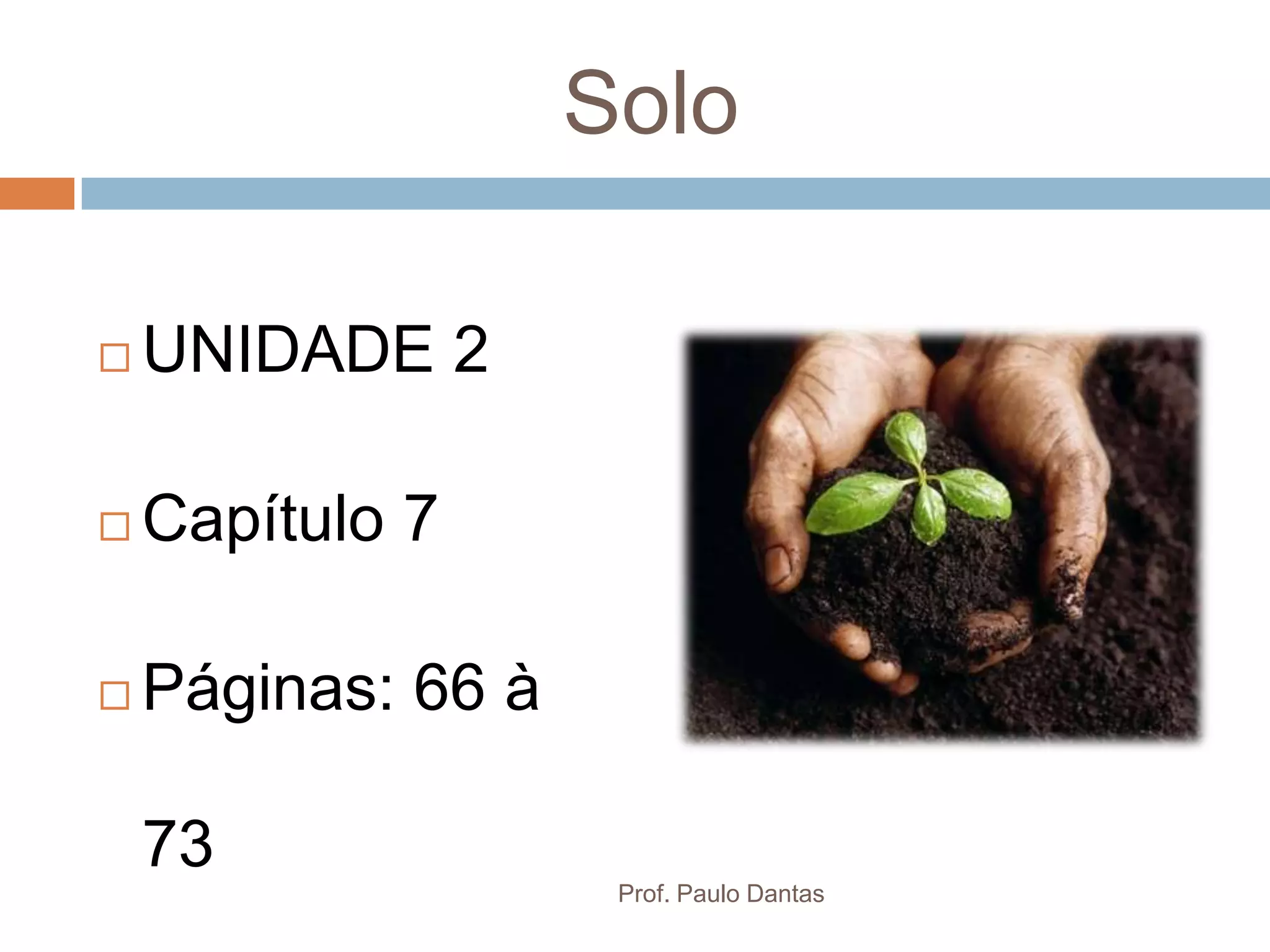 O documento discute a formação, perfis e conservação do solo. Apresenta os conceitos de pedologia e padogênese, os processos de formação do solo a partir da ação do clima e da biosfera sobre as rochas. Explica que o solo maduro possui diversos horizontes identificáveis e discute técnicas para a conservação e destruição do solo.