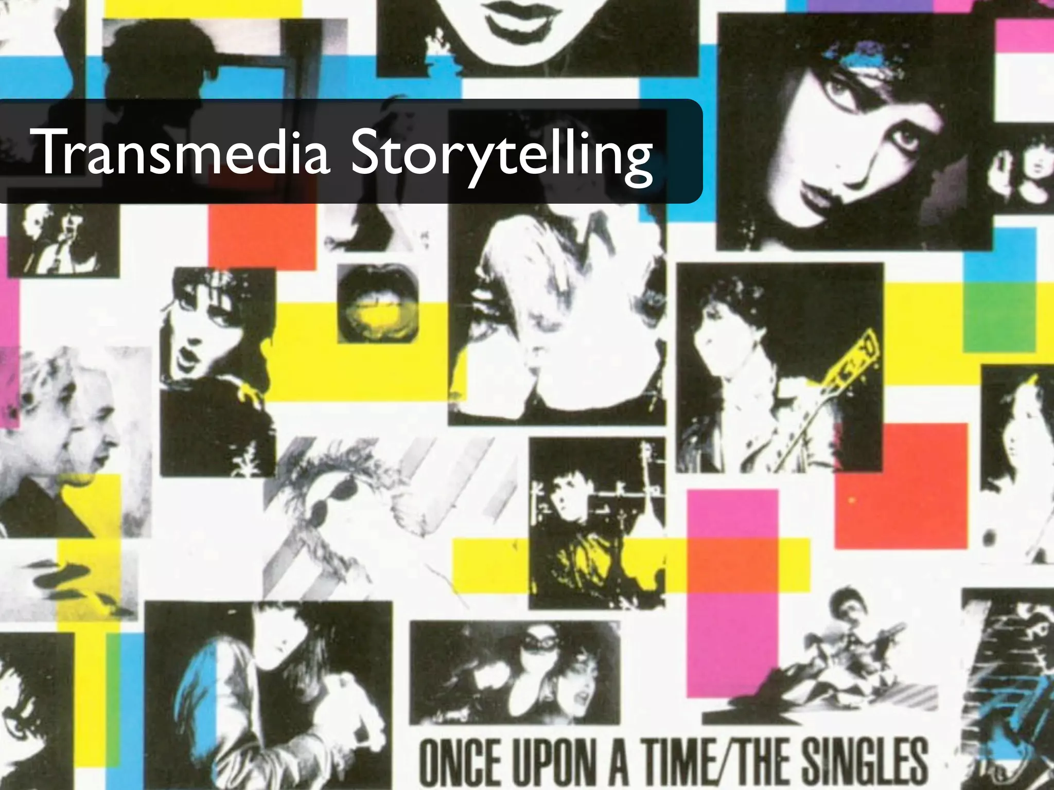 O documento discute transmídia e storytelling, citando JJ Abrams sobre como histórias sempre se repetem de alguma forma. Também cita Domenico de Masi sobre como a convergência ocorre dentro dos cérebros dos consumidores através de fragmentos de informação transformados em recursos para compreender a vida. Por fim, apresenta um slide sobre trabalho versus estudo e jogo.