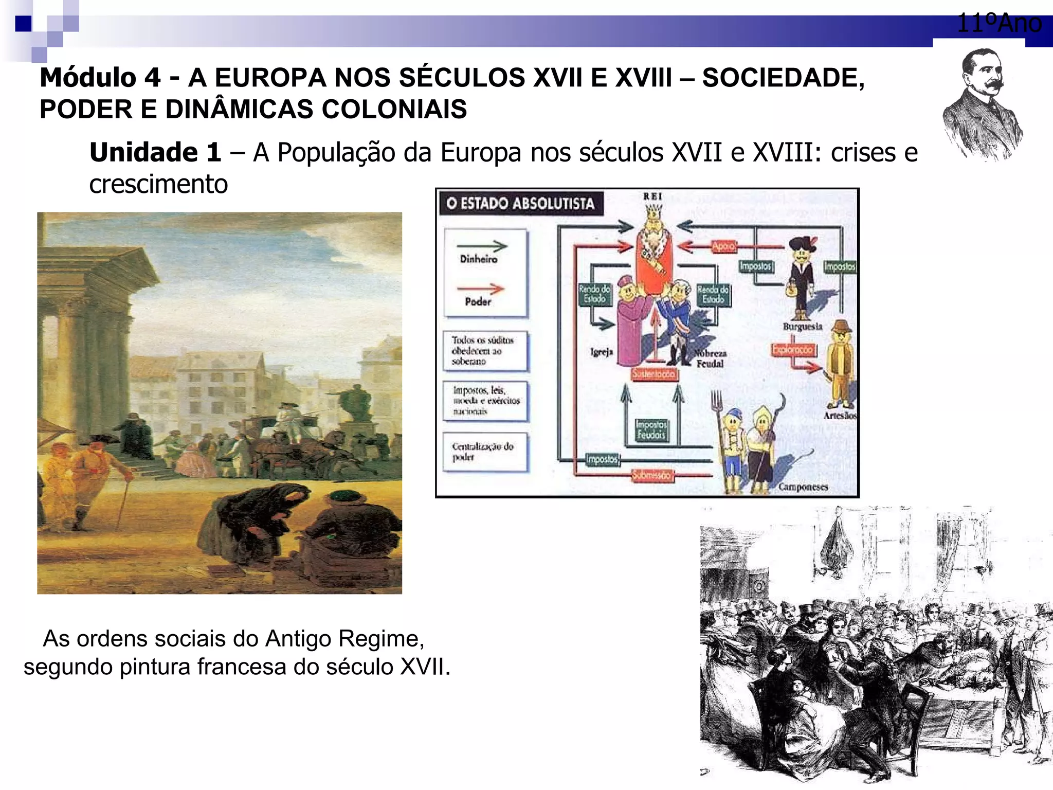 Este documento descreve a sociedade e o poder político na Europa nos séculos XVII e XVIII, com foco na Holanda e Inglaterra. A Holanda era uma república próspera liderada pela burguesia mercantil, que se expandiu marítimamente através de companhias como a Companhia das Índias Orientais. A Inglaterra limitou o poder real através do Parlamento, rejeitando o absolutismo ao contrário de outros países europeus.