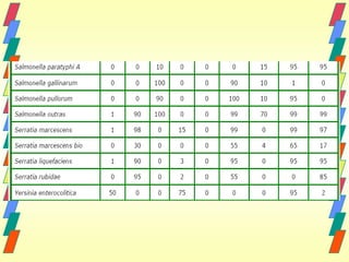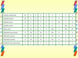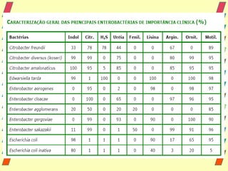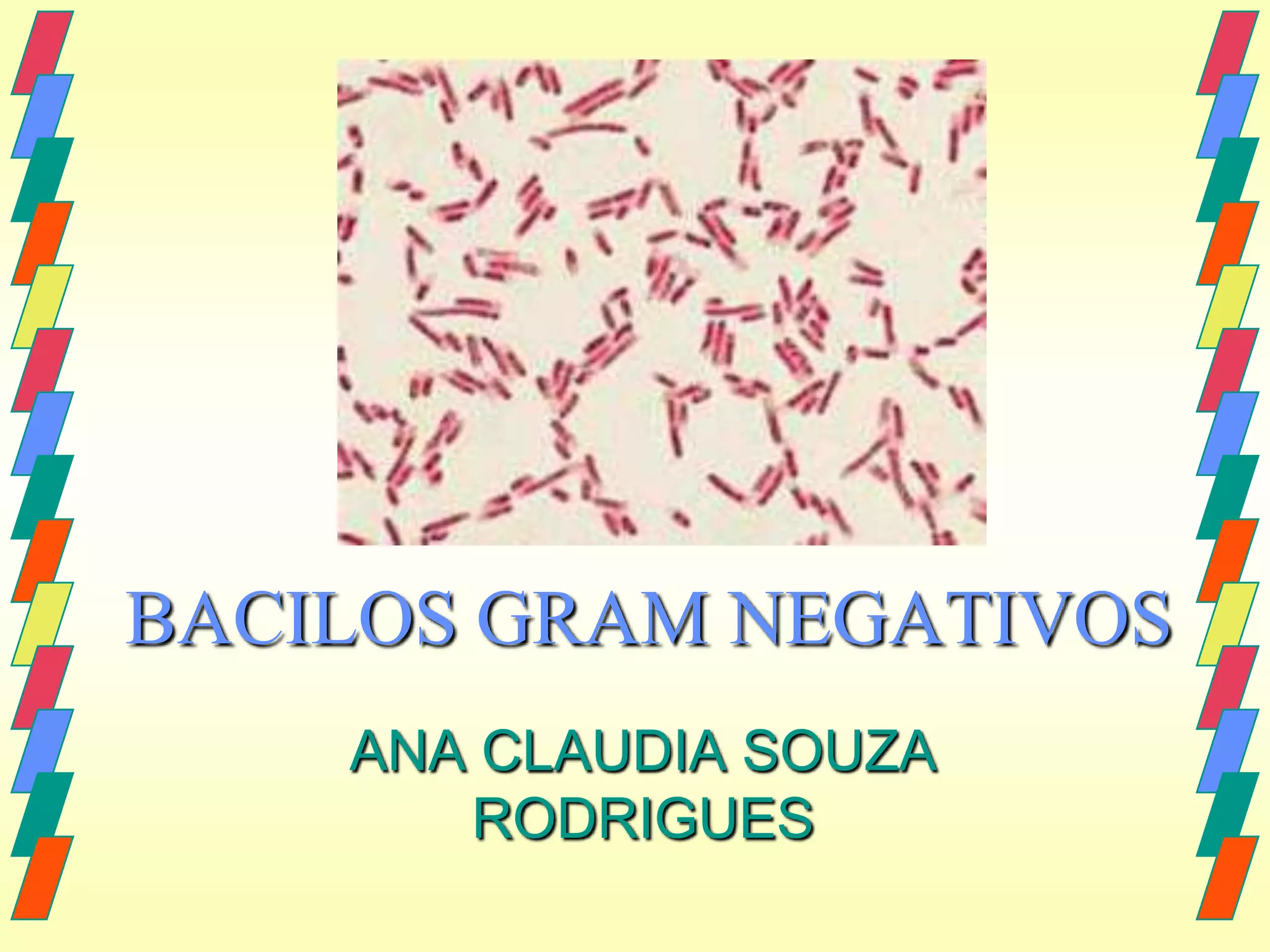 O documento descreve as principais características dos bacilos gram-negativos, incluindo enterobactérias como Escherichia coli, Salmonella, Shigella e Klebsiella, abordando sua classificação, habitat, mecanismos de virulência e doenças causadas.