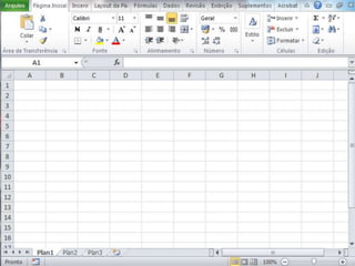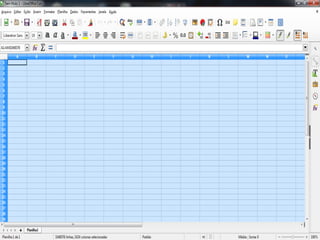 O documento fornece informações sobre as principais características e funcionalidades do Excel e do LibreOffice Calc. O Excel possui mais linhas, colunas e células por planilha em comparação com o Calc. Ambos permitem formatar células, inserir fórmulas e funções, criar gráficos e classificar dados.