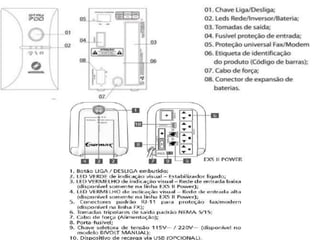 O documento discute possíveis causas e soluções para quando estabilizadores ou nobreaks não ligam, incluindo testar e substituir fusíveis, varistores e baterias, além de instalar baterias externas maiores.