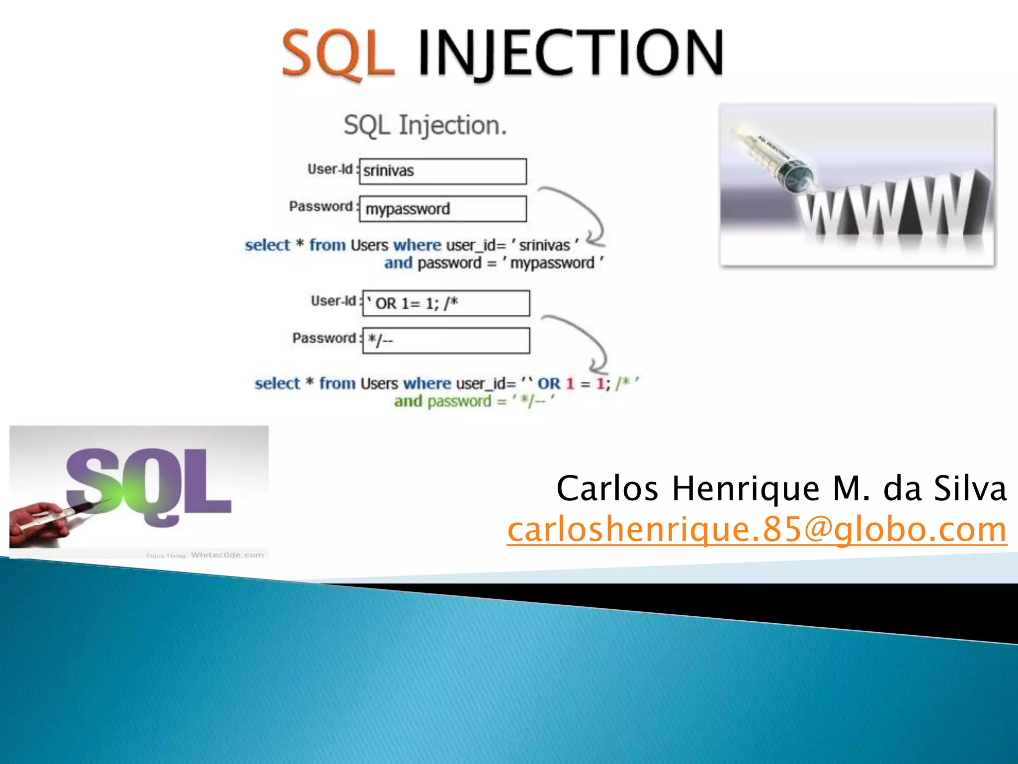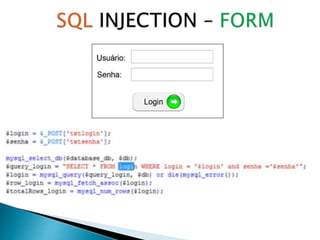 1) Injeção SQL é um ataque no qual código malicioso é inserido em parâmetros de URL para executar consultas SQL no banco de dados.