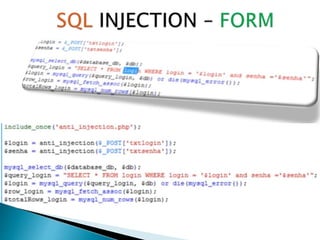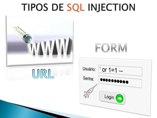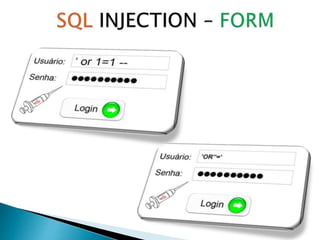 2) Sites vulneráveis podem ser encontrados usando "dorks" no Google ou testando a inserção de caracteres especiais como apóstrofes nos parâmetros da URL.