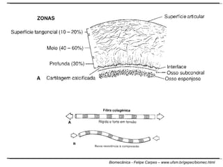 1) O documento discute as propriedades biomecânicas dos ossos, músculos, articulações, tendões e ligamentos.