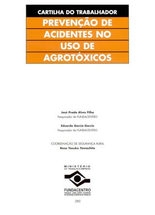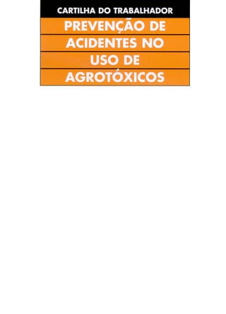 O documento discute os riscos dos agrotóxicos à saúde humana e meio ambiente, e fornece recomendações para uso seguro, incluindo usar equipamentos de proteção, seguir instruções de aplicação e armazenamento, e praticar higiene após exposição.