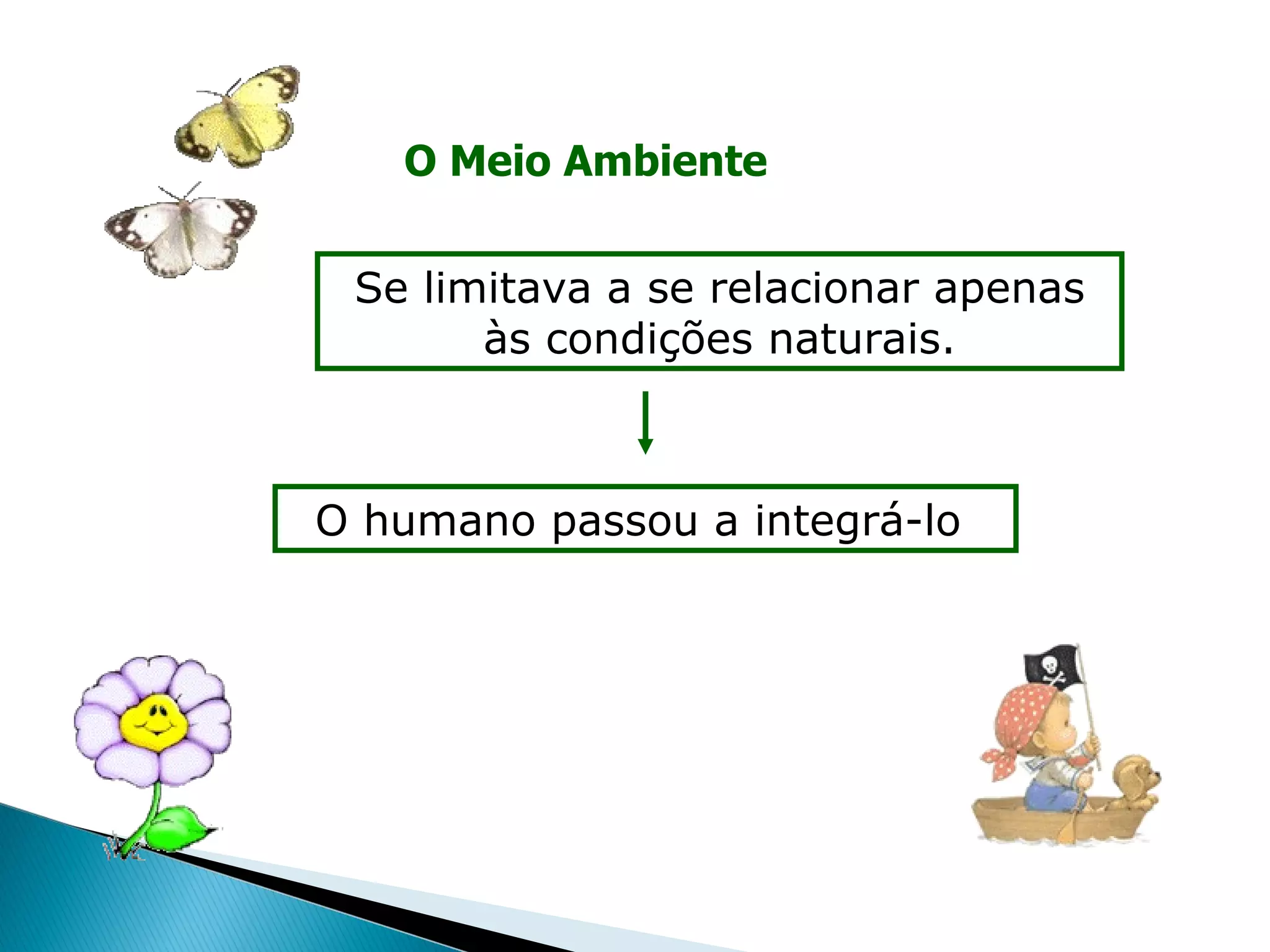 O documento discute a evolução do conceito de meio ambiente para além das condições naturais e agora incluir os aspectos culturais, artificiais e do ambiente de trabalho. Ele também diferencia os tipos de meio ambiente em urbano, rural, natural, cultural, artificial e do trabalho.