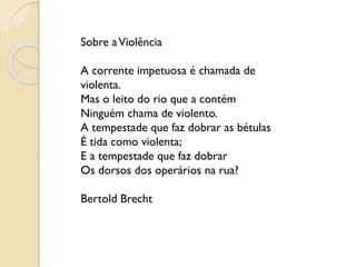 O documento discute a violência estrutural enfrentada por uma comunidade vulnerável no Rio de Janeiro e os esforços de uma equipe de saúde da família para enfrentá-la. A equipe realiza um diagnóstico situacional da comunidade, identificando problemas de saúde, violência, pobreza e falta de acesso a serviços. Eles trabalham de forma intersetorial com outras organizações para promover a participação da comunidade, gerar diálogo e planejar ações que melhorem a qualidade de vida dos moradores.