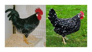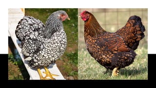 O documento fornece informações sobre sistemas de criação e raças de aves de interesse econômico. Descreve os principais sistemas de criação (extensivo, semi-intensivo e intensivo) e classifica as principais raças de galinhas de acordo com sua origem geográfica (Americana, Mediterrânea, Inglesa e Asiática), fornecendo detalhes sobre características e aptidões de produção de cada raça.
