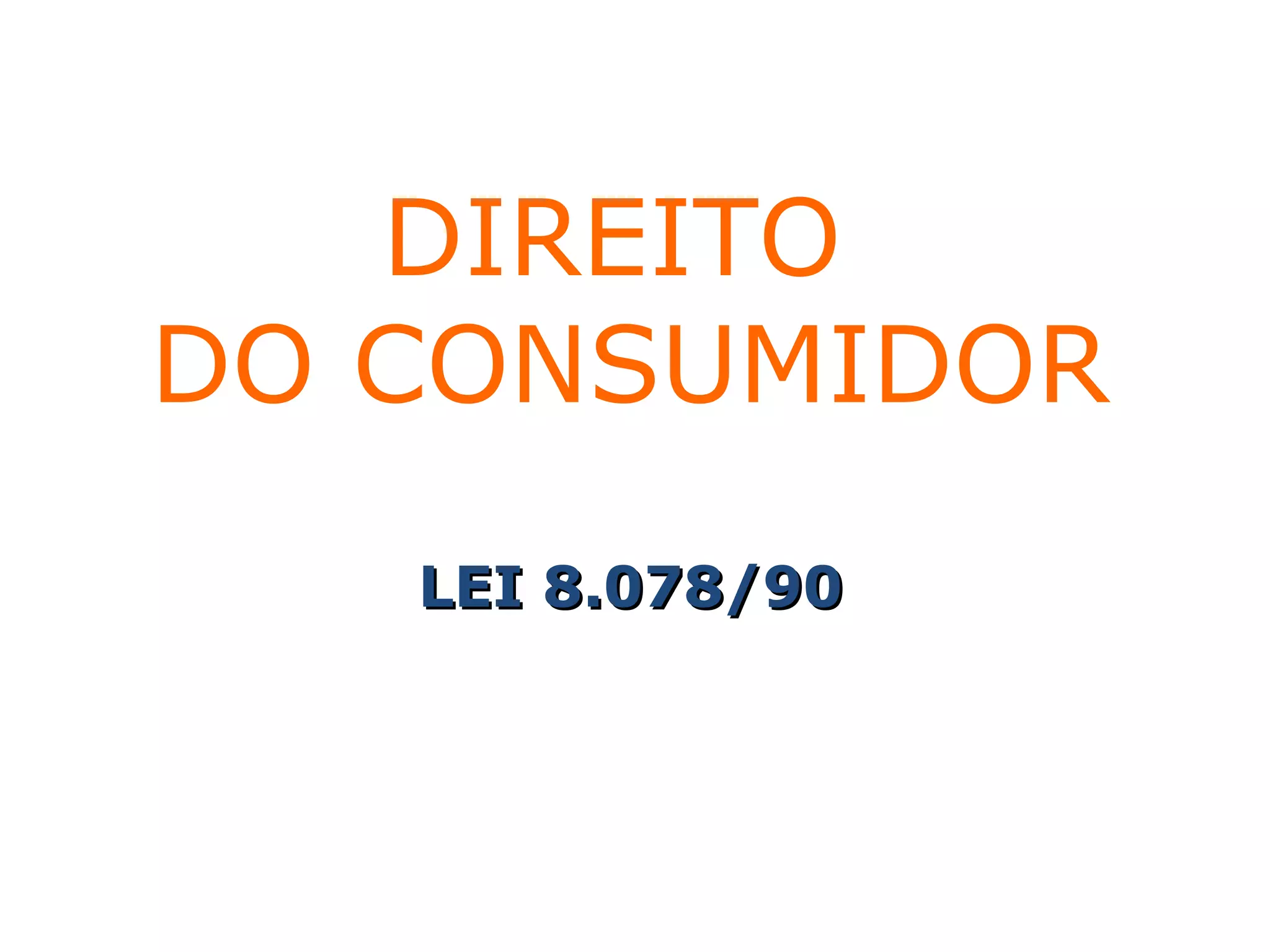 O documento resume as principais leis e conceitos do Código de Defesa do Consumidor brasileiro, incluindo definições de consumidor e fornecedor, direitos básicos do consumidor, responsabilidade por danos e vícios, práticas comerciais, publicidade, cláusulas contratuais e tutela administrativa.