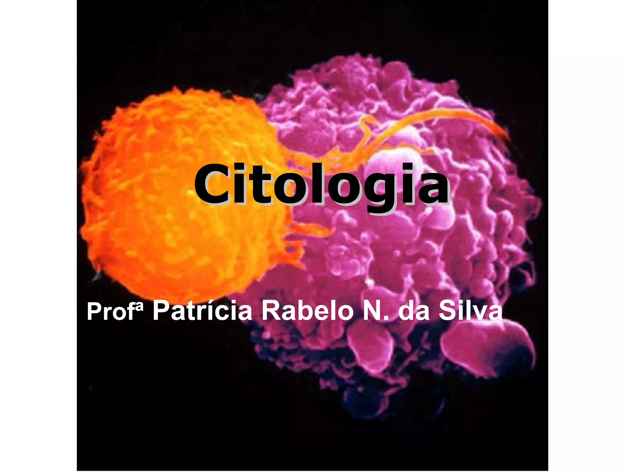 O documento discute a citologia, começando com a invenção do microscópio e descoberta da célula. Apresenta a teoria celular, que estabelece que todas as células vêm de células preexistentes, e descreve a estrutura básica das células, incluindo a membrana plasmática, citoplasma e organelas. Também diferencia células procarióticas e eucarióticas.
