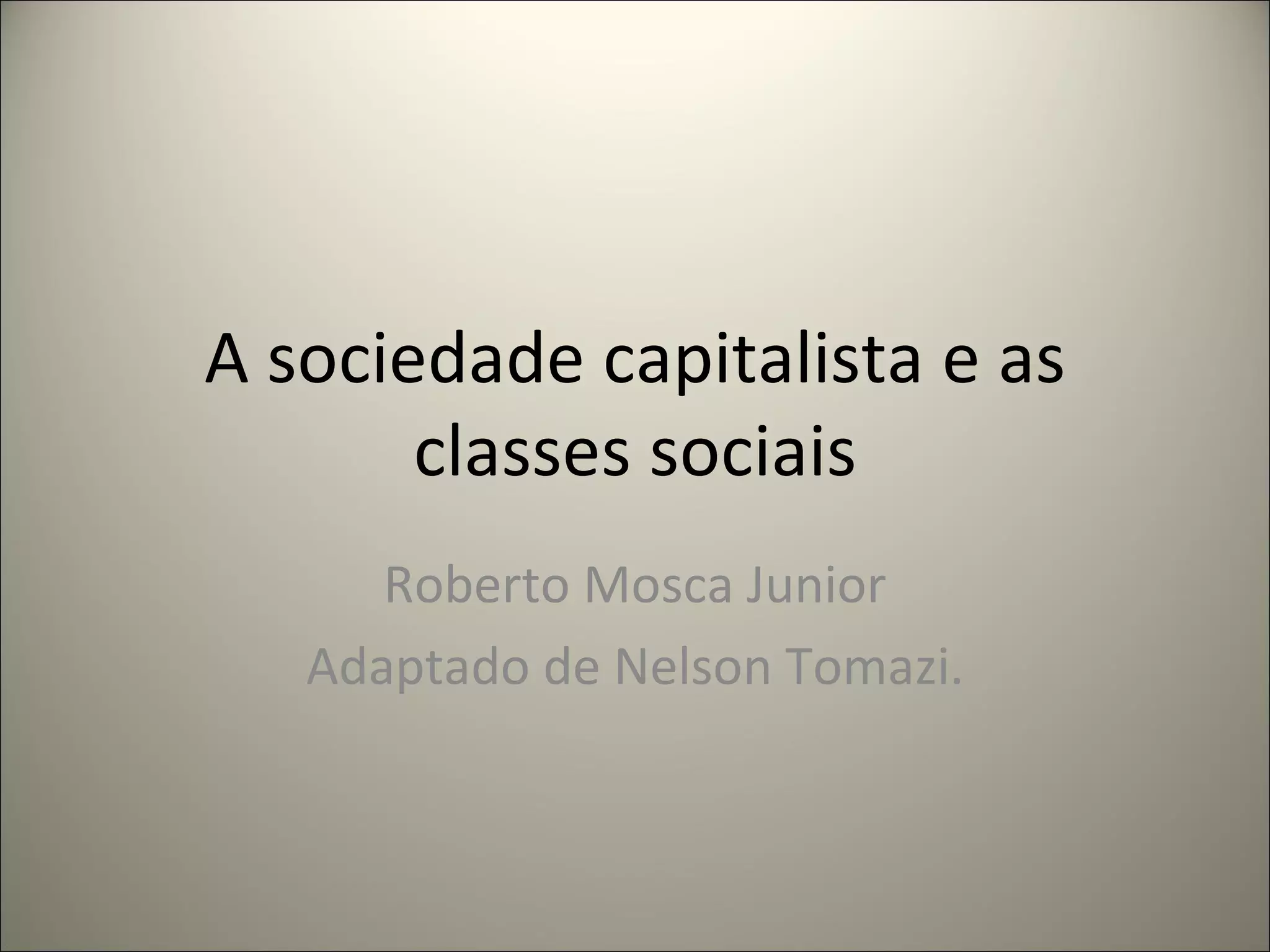 O documento discute as classes sociais na sociedade capitalista. Define classe social como grupos estratificados com base na propriedade, renda, consumo, educação e poder. Explora como as desigualdades são estruturadas na sociedade capitalista e como a mobilidade entre classes é maior do que em outras sociedades, mas ainda existem barreiras sociais.