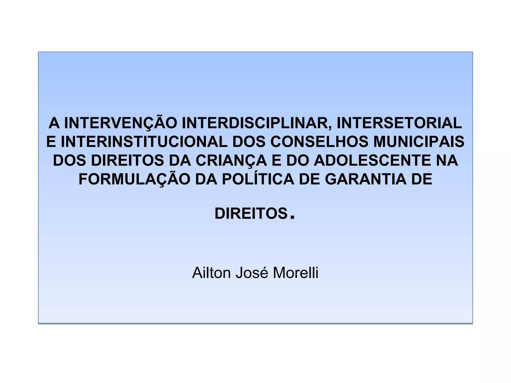2) Os Conselhos Municipais dos Direitos da Criança e do Adolescente foram criados para formular políticas públicas e controlar sua execução de forma intersetorial e interinstitucional.