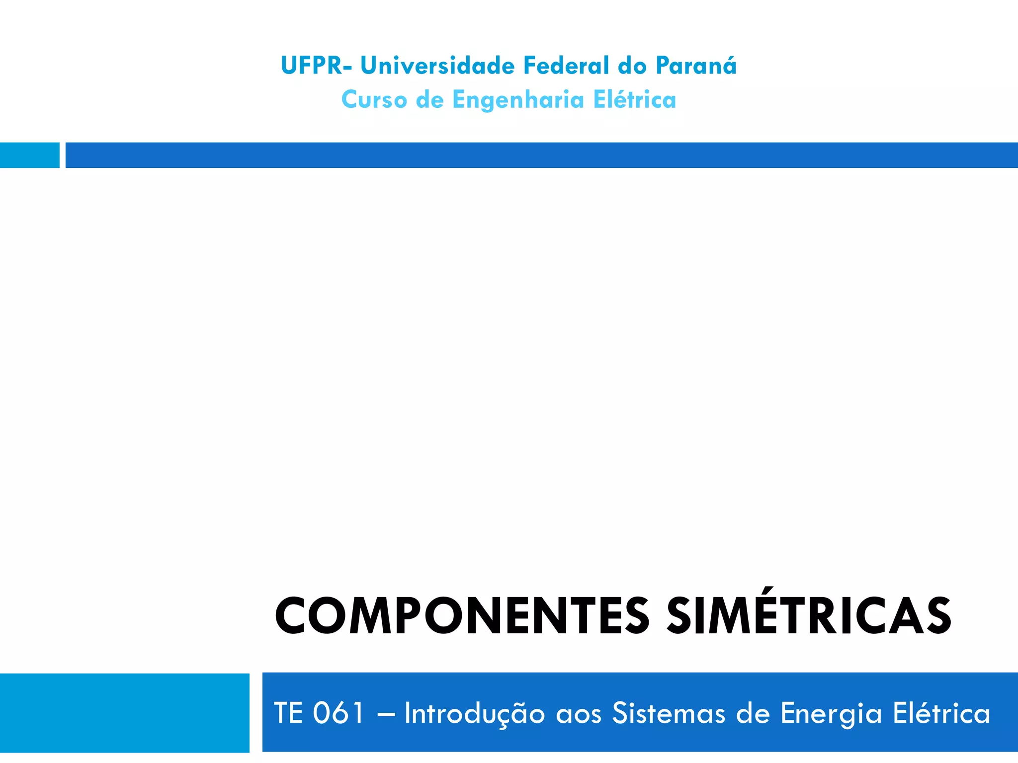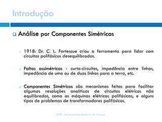 1) As componentes simétricas são ferramentas para analisar circuitos polifásicos desequilibrados, decompondo-os em sistemas equilibrados.