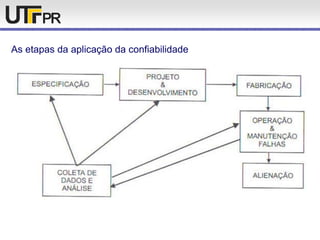 O documento descreve conceitos e métodos relacionados à confiabilidade, como: