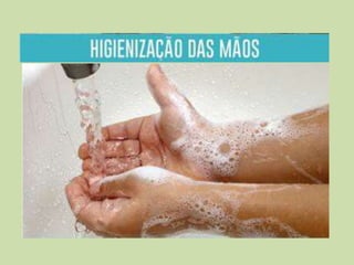 O documento discute biossegurança e equipamentos de proteção individual (EPIs). Ele fornece uma lista de EPIs recomendados, como máscaras, óculos, luvas e aventais, e enfatiza a importância de usar EPIs corretamente para minimizar riscos à saúde. Ele também discute procedimentos como higienização das mãos e remoção de EPIs.