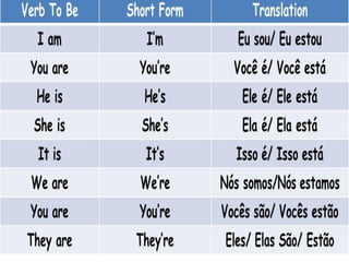 [3] A professora lista alguns tópicos que serão abordados na aula, como pronomes pessoais, verbo "to be", perguntas, negações e pronúncia.