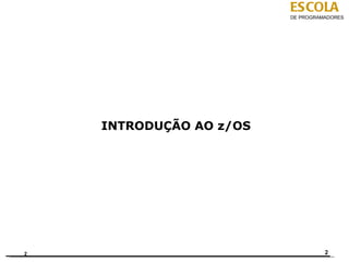 - O documento apresenta uma introdução ao sistema operacional z/OS, descrevendo seu histórico, hardware, software, periféricos, arquiteturas, conceitos e terminologia.