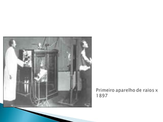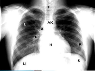 O documento discute as propriedades e os efeitos biológicos da radiação em exames radiográficos, incluindo os tipos de imagens, posições e como avaliar estruturas como a pleura e o parênquima pulmonar.