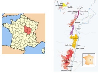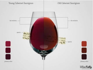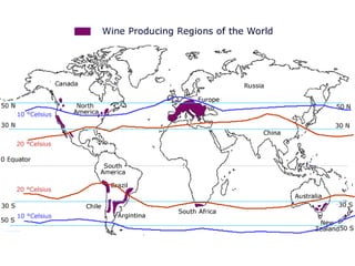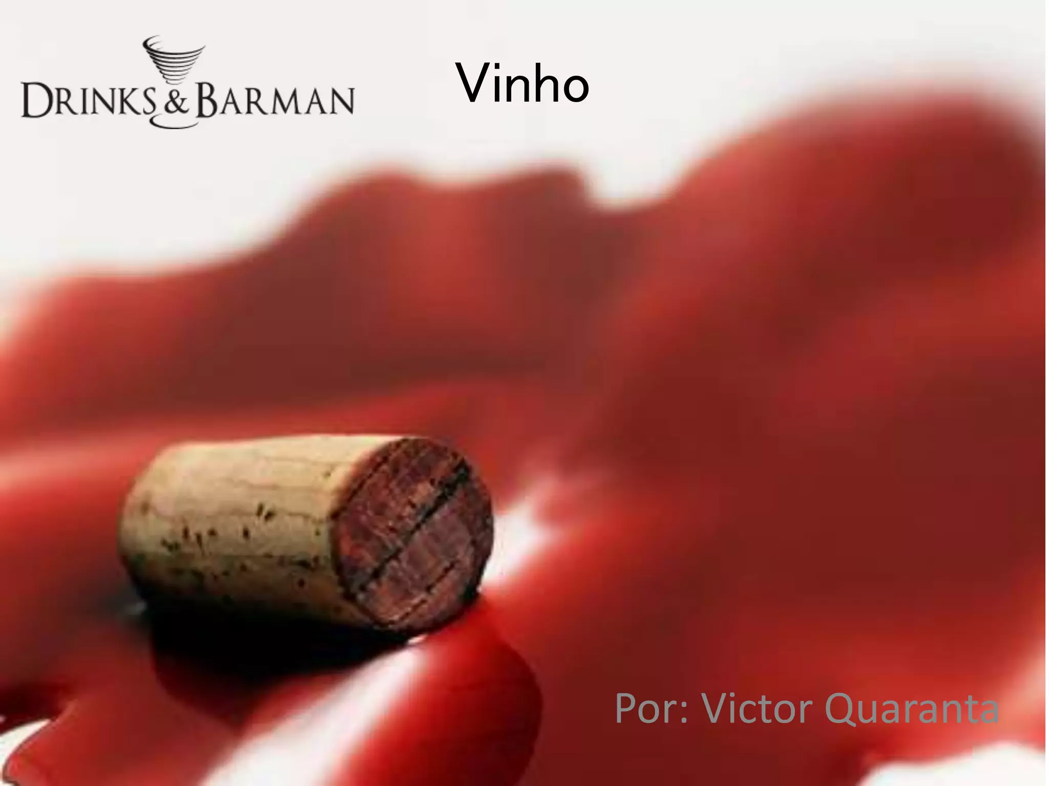 O documento descreve os principais tipos de vinho, incluindo vinhos tranquilos, espumantes e fortificados. Detalha as características de vinhos tintos, brancos e rosé e explica como fatores como clima, solo e uvas influenciam o estilo e sabor do vinho.
