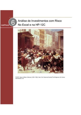 1) O documento discute riscos em investimentos financeiros e não financeiros, além de métodos para medir riscos e retornos esperados.