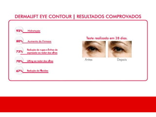 O documento discute a flacidez e redução de sinais da pele causados pelo envelhecimento, listando formas de prevenção e tratamento, incluindo dermocosméticos. Ele também apresenta vários produtos como cremes e séruns para reduzir rugas e flacidez.