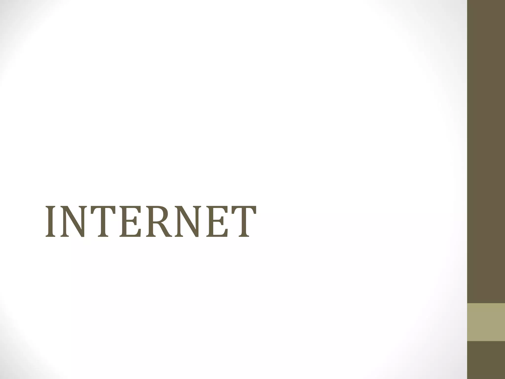 A internet é uma rede global de computadores conectados que permite o compartilhamento de informações. Ela funciona por meio de protocolos de comunicação e provedores de acesso. A World Wide Web é um sistema de hipertexto acessado por meio de navegadores que permite pesquisar e acessar páginas da web através de links. Existem diversos serviços disponíveis na internet como email, redes sociais, comércio eletrônico e buscadores.