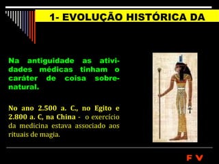 [1] O documento discute a evolução histórica da responsabilidade civil e penal do médico, desde a antiguidade até os dias atuais. [2] Ao longo da história, a atuação médica foi deixando de ter caráter sobrenatural e passou a ser regulada por códigos e leis, embora a impunidade ainda prevalecesse em alguns períodos e locais. [3] Nos dias atuais, a responsabilidade médica é analisada sob a ótica legal do contrato entre médico e paciente e do nexo causal entre a cond