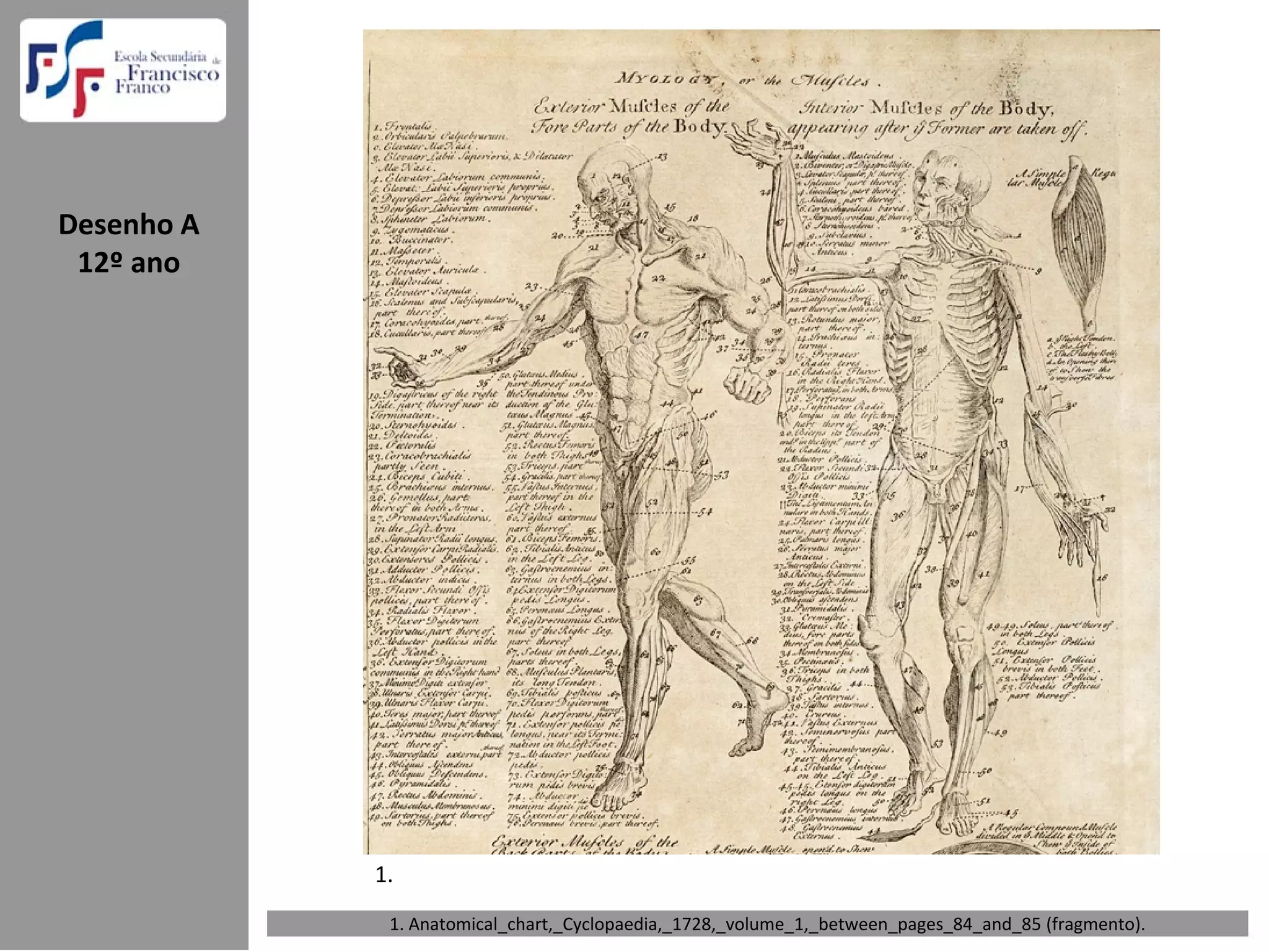 1) O documento discute proporções ideais da cabeça humana e estudos de anatomia artística, incluindo definições de termos como anatomia e cânone.