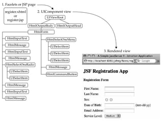 O documento aborda conceitos chave sobre JSF 2, incluindo seu ciclo de vida, conversores e validação de dados. Além disso, discute o uso de AJAX para melhorar a interatividade e desempenho, bem como a biblioteca PrimeFaces para componentes rich. Por fim, destaca práticas de internacionalização no JSF, permitindo a criação de aplicações multilíngues.