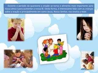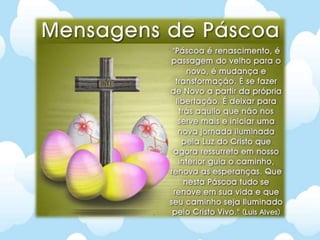 O documento descreve os eventos da Semana Santa, incluindo a entrada de Jesus em Jerusalém, sua prisão e crucificação, e o estabelecimento da Semana Santa como uma semana de comemoração pelo Concílio de Niceia. Cada dia da Semana Santa faz referência a um evento importante, como a Última Ceia na Quinta-feira Santa e a crucificação de Jesus na Sexta-feira Santa.