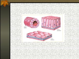 O documento descreve os quatro principais tipos de tecidos que compõem o corpo humano: epitelial, conjuntivo, muscular e nervoso. Cada tecido é formado por células especializadas que realizam funções específicas, como revestimento, sustentação, movimentação e condução de estímulos. Além disso, o documento fornece detalhes sobre os diferentes tipos de cada tecido e suas respectivas funções no organismo.