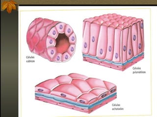 O documento descreve os principais tipos de tecidos que compõem o corpo humano: epitelial, conjuntivo, muscular e nervoso. Cada tecido é formado por células especializadas que realizam funções específicas, como revestimento, sustentação, movimentação e condução de estímulos. Os tecidos se organizam em órgãos e sistemas para realizar funções vitais do corpo.